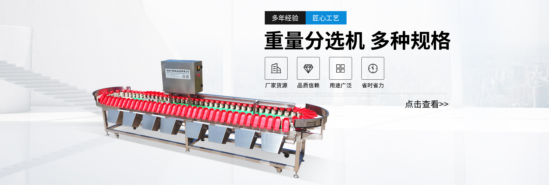 重量分選機的應用范圍非常廣泛,比如食品行業的大小分類、質量檢測行業。目前重量分選機分為托盤式和皮帶式兩種。托盤式分選機在屠宰肉食水產行業應用廣泛,且稱重精度高,誤差±0.5g。高精重量…